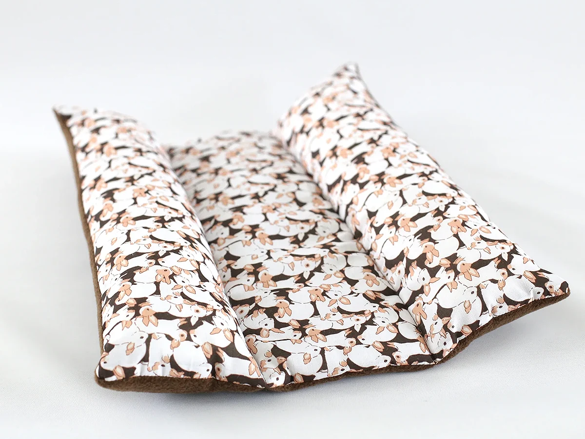 Cozy bed for rabbits with soft cushioned sides. Provides comfort, support, and a sense of security for rest and relaxation